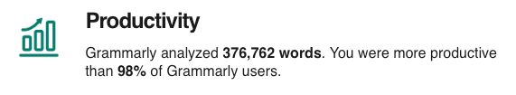 Grammarly has reminded me of how much I have written. Last week, specifically, I wrote almost 377k words.
